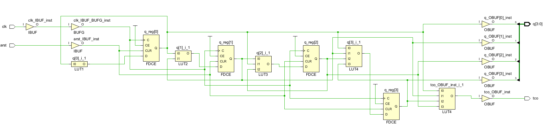 // assign tco = ~(&q) //q가 모두 1이면 0나감 위와 같다
