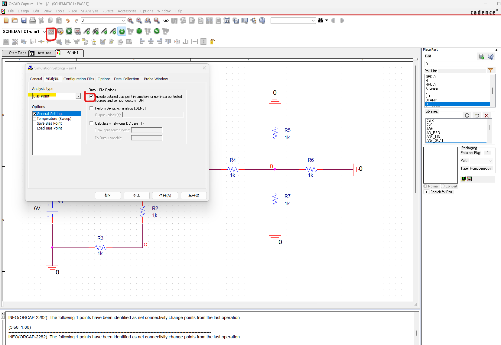 프로젝트 생성 후 왼쪽 위의 아이콘을 눌러 Analysis type을 바꿔 원하는 시뮬레이션을 진행할 수 있다.