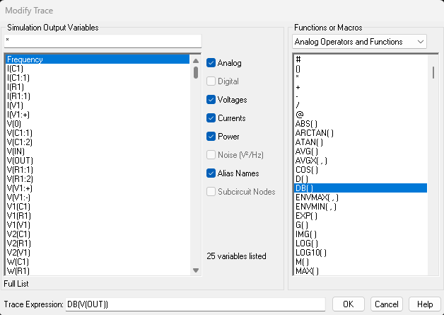 위와 같이 AC sweep 시뮬레이션 셋팅을 해주었다.