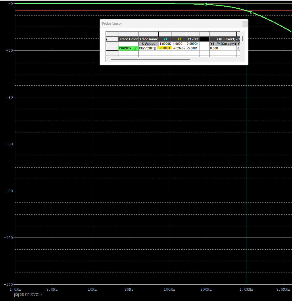 그래프를 확대해보면 -3dB지점이 1kHz임을 확인할 수 있다.