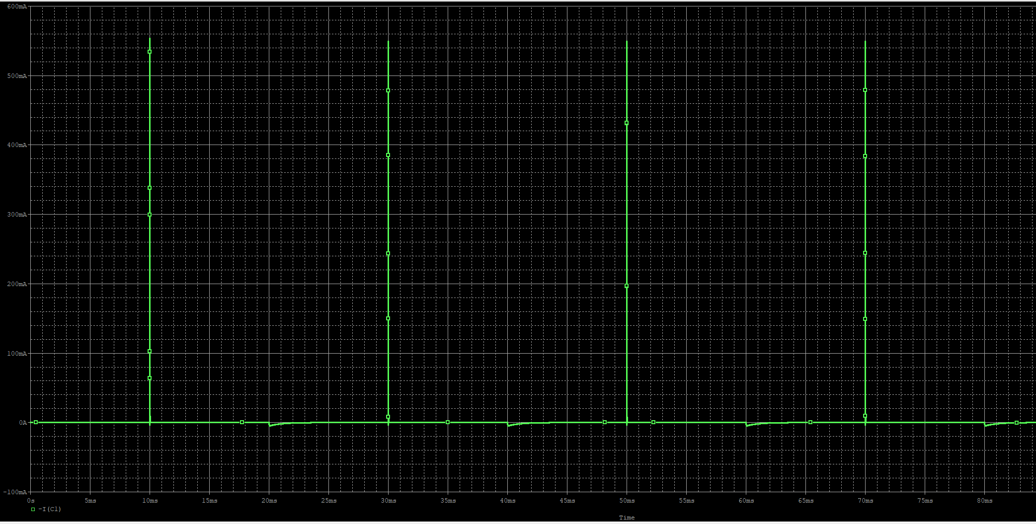 커패시터 성분에 의해 inrush current가 발생한 것을 확인할 수 있다.