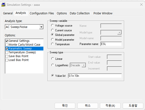 이제 ESL 값에 따른 파형을 한 번에 확인해보자