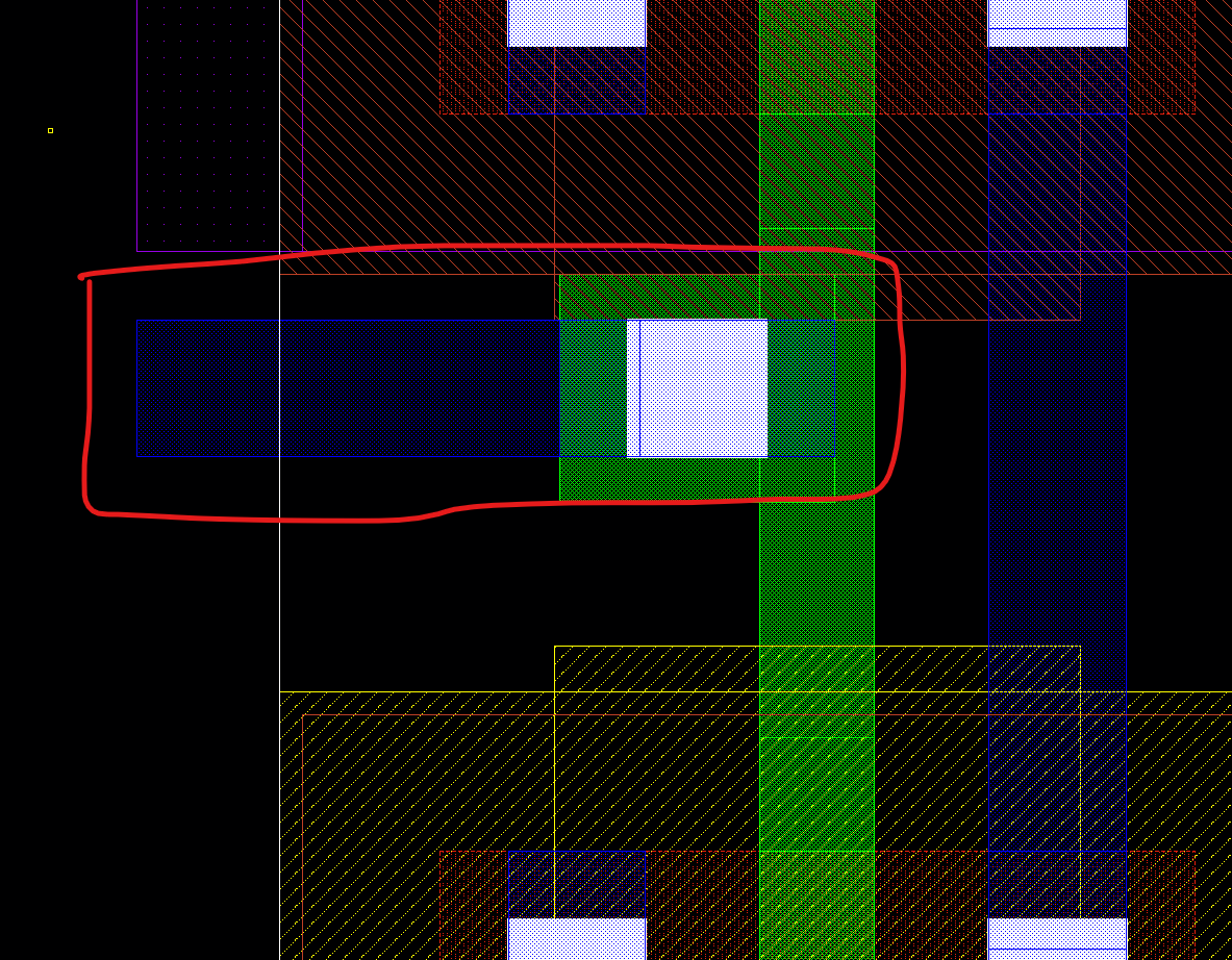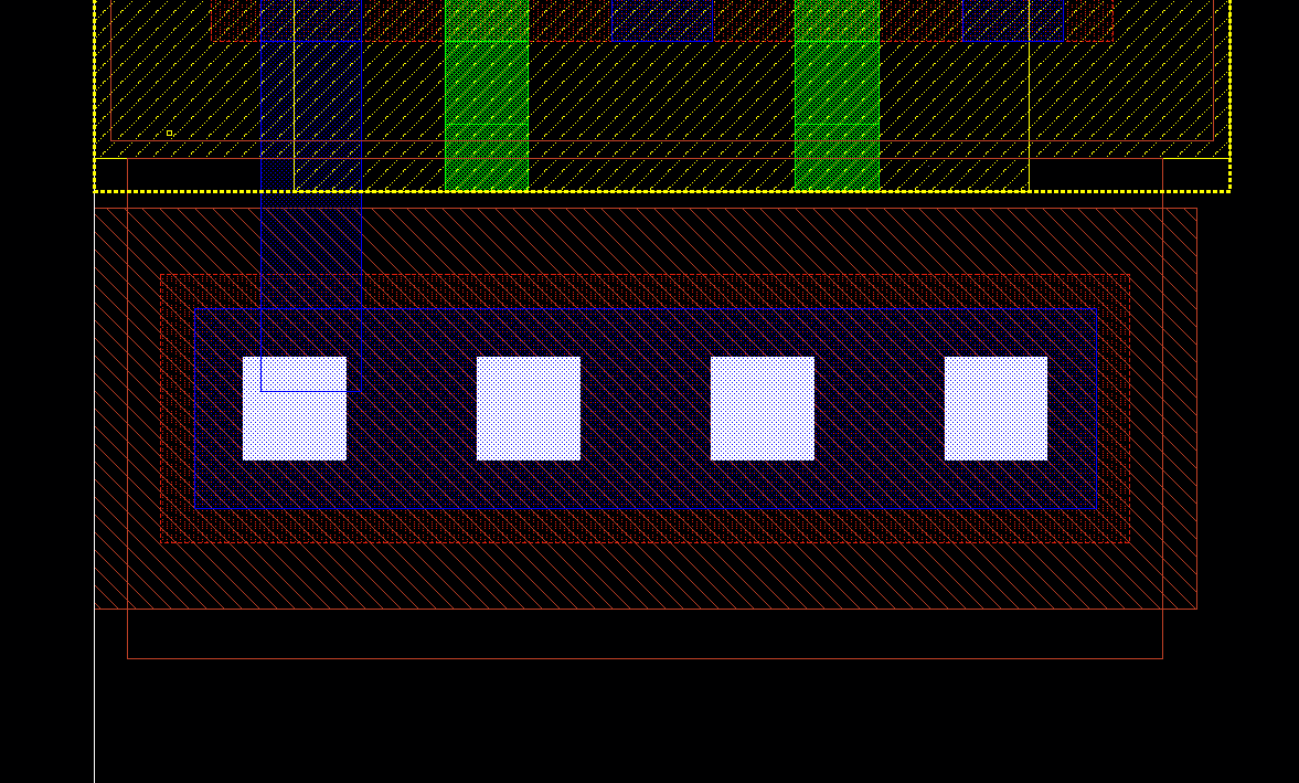 이제 pmos는 전체 n-well로 덮어줘야 한다. R을 눌러서 감싸주고, S를 눌러서 조정해준다. 위와 같이 만든다.