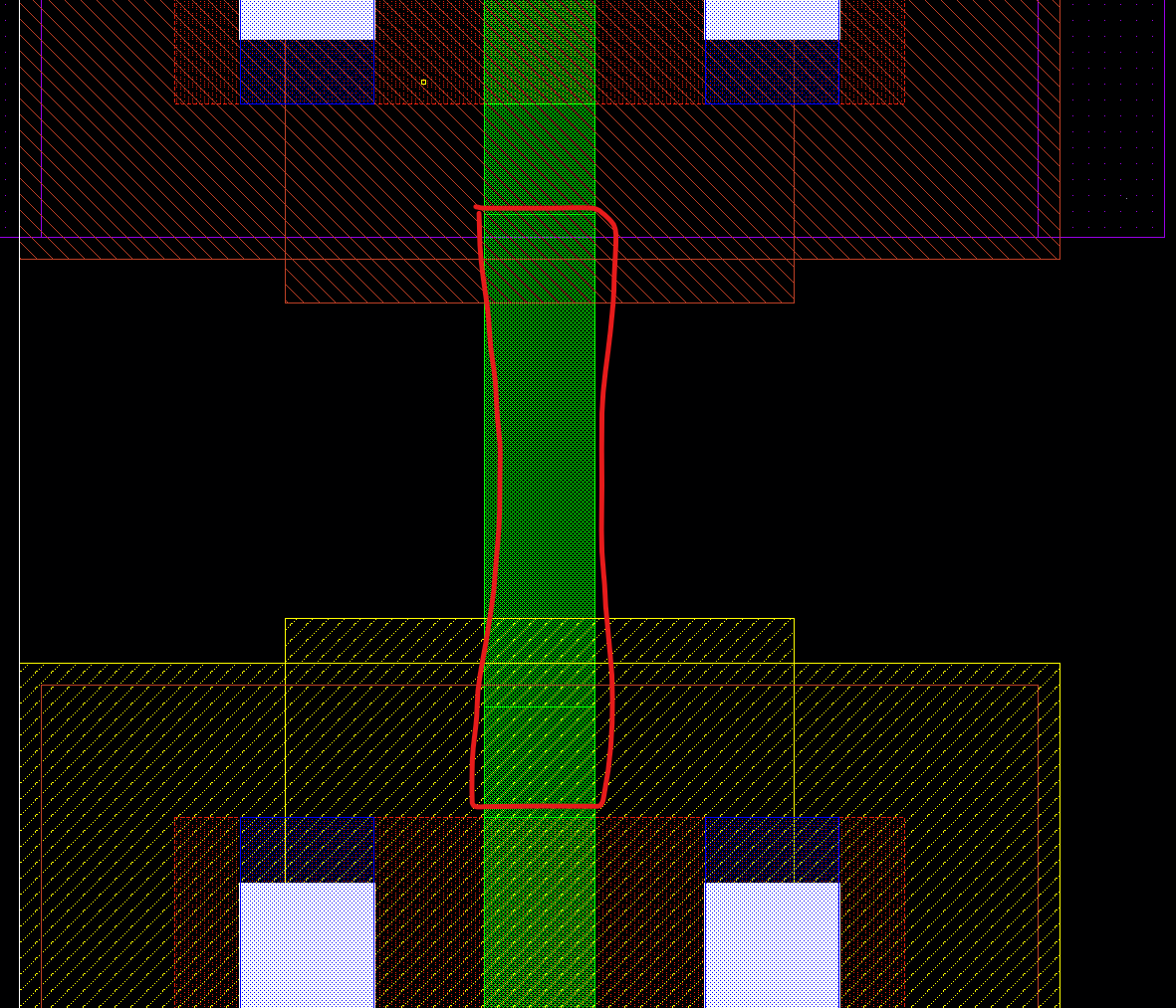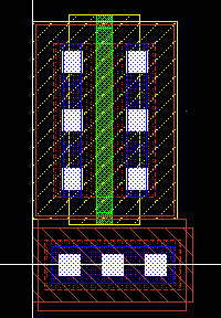 왼쪽 창에서 poly를 누르고 R누르 pmos와 nmos 사이에 폴리를 연결해준다. (살짝 겹치게)