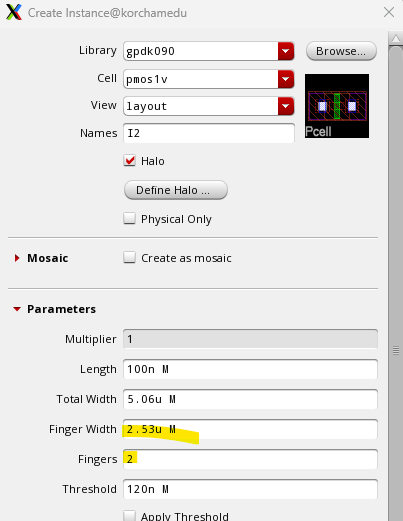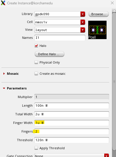 이 때 간격은 5.78u 길이여야 한다. DRC 체크 후에 전체적인 사이즈를 줄인다.
