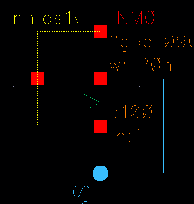 nmos와 psub 간격은 0.1u, 단축키K를 누르면 눈금확인가능하다.