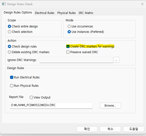 이제 저장 후 DRC 체크해보자.