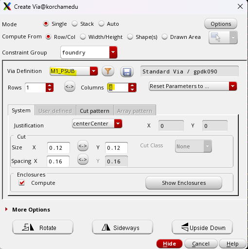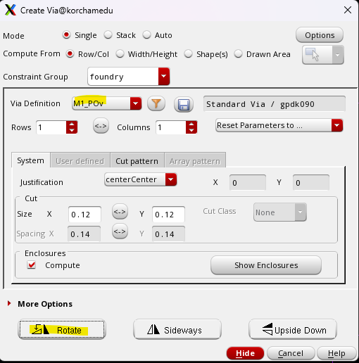메탈과 폴리를 연결해보자, 비아를 만들어준다. POv -> 공간을 위해 Rotate해서 쓴다.