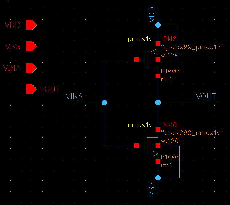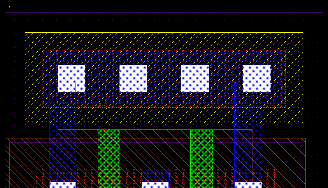 Pmos는 n-well, Nmos는 psub 연결, 단축키O (via)를 눌러서 만들어보자.