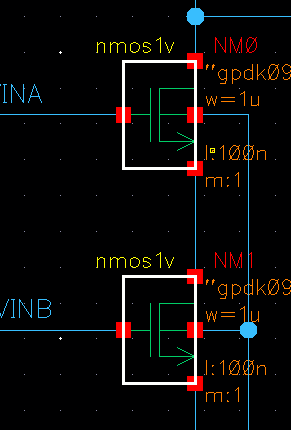 nmos는 1u로 만들어서 배치한다.